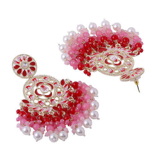 Jhumka Earrings for Women Gold Plated Traditional Pink Meenakari Lotus Chandbali Jhumka Earrings for Women and Girls