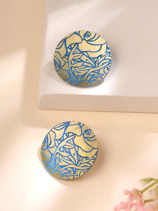 Meenakari Stud Earrings for Women | Fashion Earrings for Girls Golden Studs Earrings | Gold Plated Circle Shaped Women Earrings | Birthday Anniversary Gift for Girls Wife