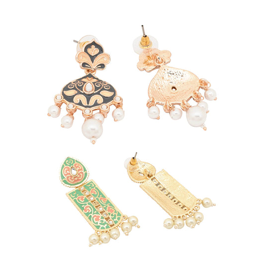 Earrings for Women and Girls Meenakari Drop| Gold Plated 2 pc Combo of Meenkari Drop Earrings | Birthday Gift for girls and women Anniversary Gift for Wife