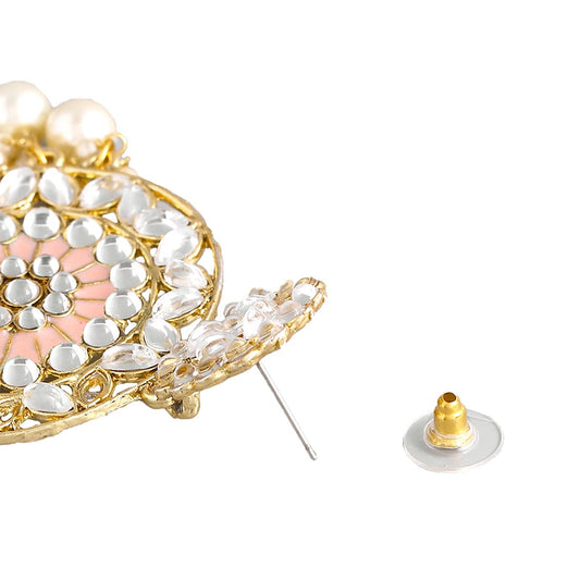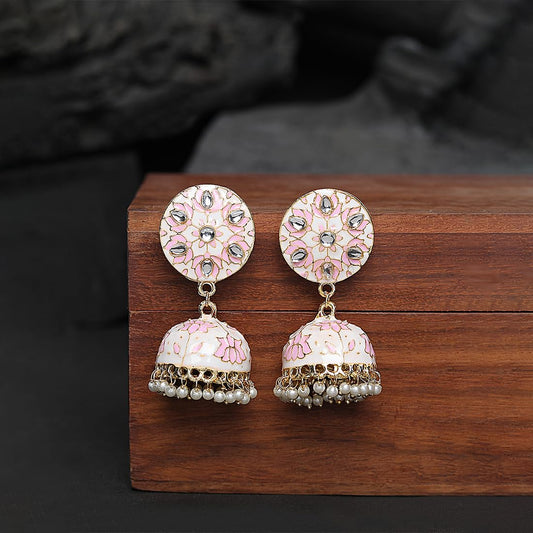 Jhumka Earrings for Women Traditional Gold Plated Pink Flower Meenakari Kundan Jhumki/Jhumka Earrings for Women and Girls