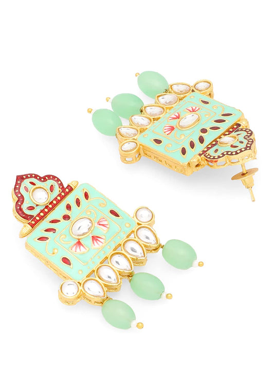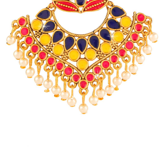 Jewellery Set for Women Kundan Studded Gold Toned Meenakari Touch Charm Necklace Set with Earrings for Women and Girls