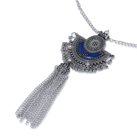 Stylish Crafted Royal Blue Meenakari Oxidized Silver Necklace Set with Earrings Oxidized Jewellery Sets for Women and Girls