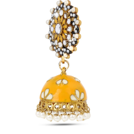 Meenakari Gold Toned Traditional Yellow Jhumka/Jhumki Earrings for Women & Girls (Yellow)
