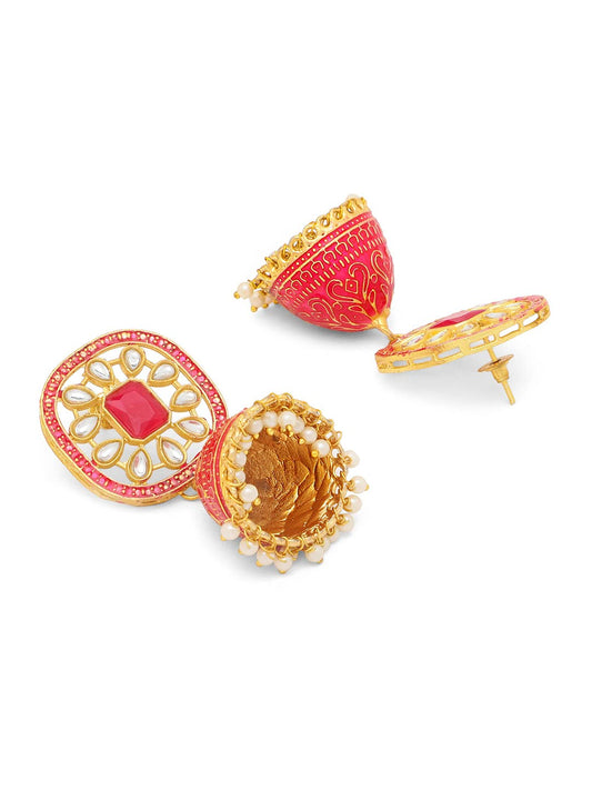 Jhumka Earrings for Women Pink Meenakari Jhumka Earrings Traditional Gold Plated Kundan Jhumka/Jhumki Earrings for Women and Girls