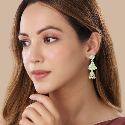 Earrings for Women and Girls Meenakari Jhumka | Silver Tone Green Meenakari Jhumki Earrings | Birthday Gift for girls and women Anniversary Gift for Wife