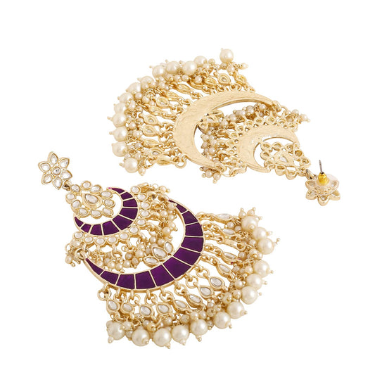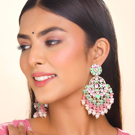 Ethnic Traditional Kundan Studded Pearl Meenakari ChandBali Earrings for Women and Girls