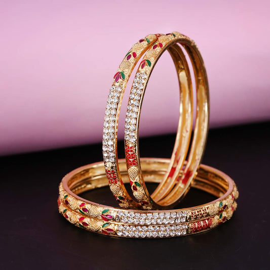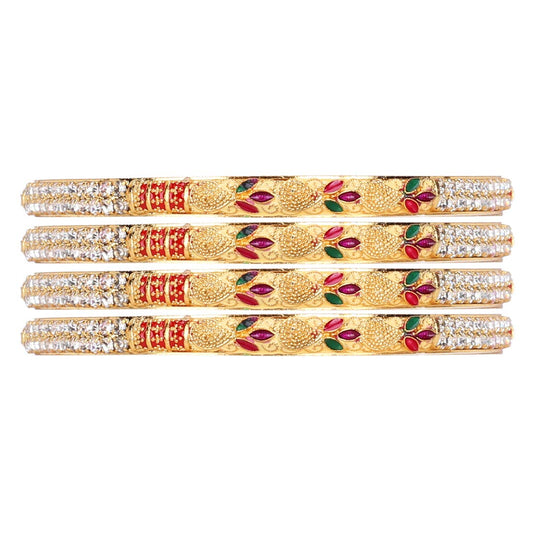 Ethnic Design Set of 4 PCs One Gram Gold Crystal Studded Handcrafted Meenakari Traditional Bangle Set for Women & Girls (2.8)
