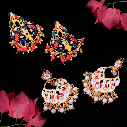 Chandbali Earrings for Women Combo 2 Pairs Multicolor Meenakari Chandbali Earrings for Women and Girls