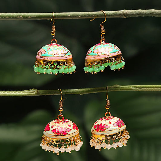 Meenakari Jumka Earrings with Ethnic Design Gold Plated Traditional Beads Combo of 2 pair for Women and Girls