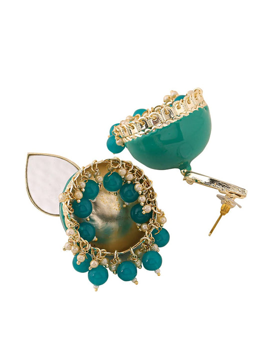 Earrings for Women Gold Toned Pearl Drop Mirror Finished Green Meenakari Jhumka Earrings for Women and Girls