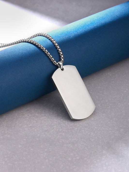 Stainless Steel Plain Silver 3 MM Tag Pendant Necklace Silver Plated Pendant for Men (Silver) (YCSSCH-TAG1BIG-SL)