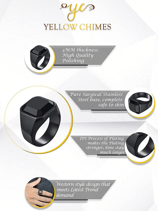 Rings for Men Stainless Steel Black Ring Square Shaped Crystal Black Steel Ring for Men and Boys.