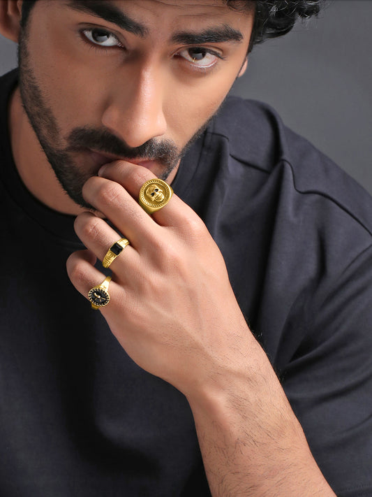 Combo: Gold Plated Rings Set of 6 for Men | Size 9 | Stylish Design | Multi-Color