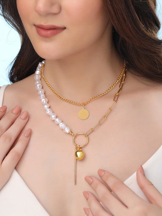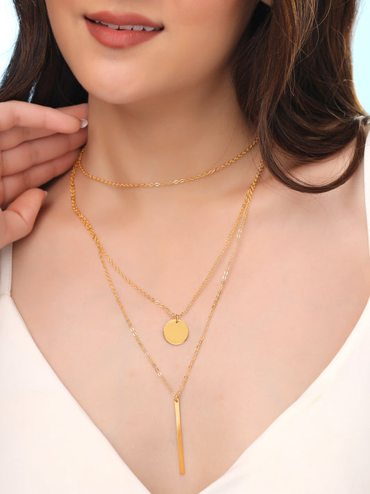 Combo: Gold Plated Multi-Layered Necklace & Earring Set | for Women