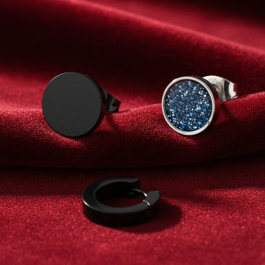 Combo of 3 Pcs: Black Rhodium Plated Men's Earrings | Elegant Accessory