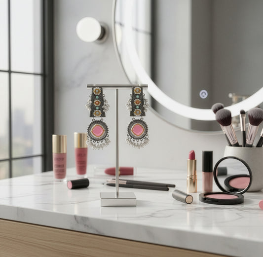 Ethnic Oxidised Silver Jhumka Earrings: Traditional Dangler | Medium | 1 Pair