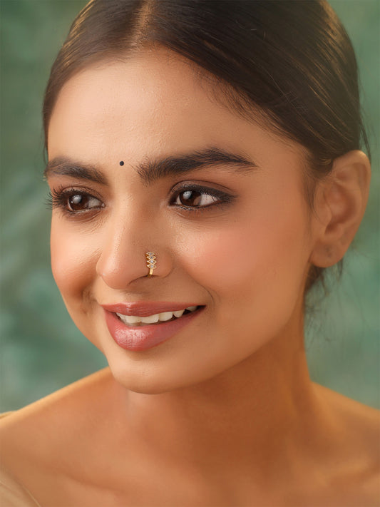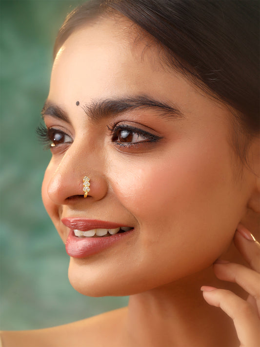 Nose Rings for Women Gold-Plated White Traditional American Diamond Nose Pin with Chained Nose Ring for Women and Girls
