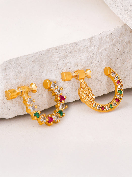 A5 Grade American Diamond Traditional Gold Plated Without Piercing Combo Nose Pins for Women & Girls