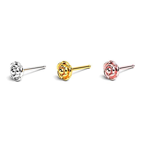 Nose Pins for Women Piercing Nose Pins Stainless steel 3 Pcs Multicolor Rose Design Nose Pins for Women and Girls.