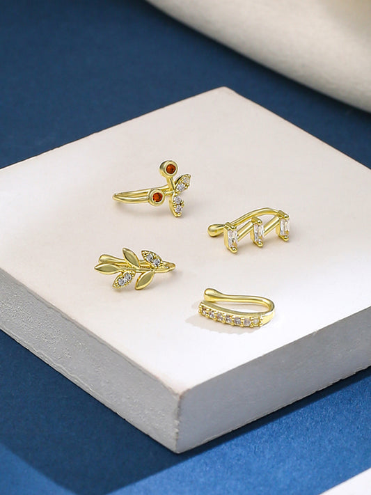 Combo: 4 Elegant Gold-Plated Leaf Shaped Nose Pins for Women | Non-Piercing | Gift-Ready