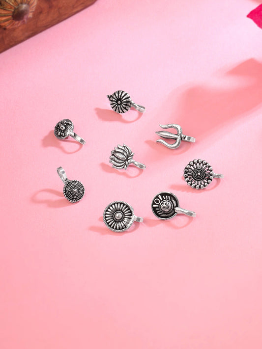 Nose Pin for Women and Girls | Traditional Silver Oxidised Nose Pin Without Piercing | German Silver Nose Pin Set | Floral Shaped Nosepin Combo | Accessories Jewellery for Women | Birthday Gift for Girls and Women Anniversary Gift for Wife