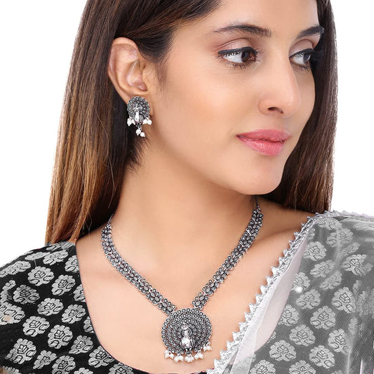 Jewellery Set for Women and Girls Traditional Silver Oxidised Jewellery Set Silver Necklace Set for Women | Oxidized Temple Necklace Set | Birthday Gift For Girls and Women Anniversary Gift for Wife