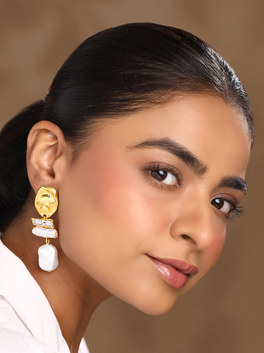 Dangler Earrings: Traditional Gold Plated Chandbali with Pearl | One Size | Gold