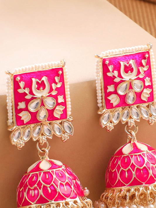 Meenakari Jhumka Earrings for Women Girls | Enamel Pink Jhumka Earring | Traditional Gold Plated Pearl Heavy Jhumki Earrings |Eternal Elegance | Birthday Anniversary Gift for Girls Women