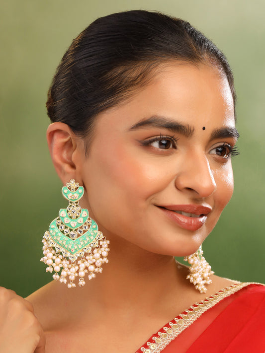 Elegant Gold Plated Kundan Pearl Earrings | Long Dangler Design | One Size | Multicolor
