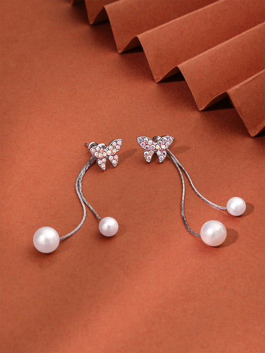 Pearl Danglers Earrings for Women | Silver Earrings for Girls | Fashion Women Earrings | Butterfly Shaped Long Chain Dangler Earring | Birthday Gift For Girls Anniversary Gift for Wife