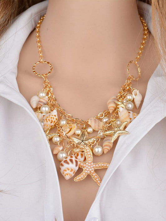 Layered Necklace for Women Gold-plated Western Pearl Beads Multi layered Chain Necklace for Women and Girl