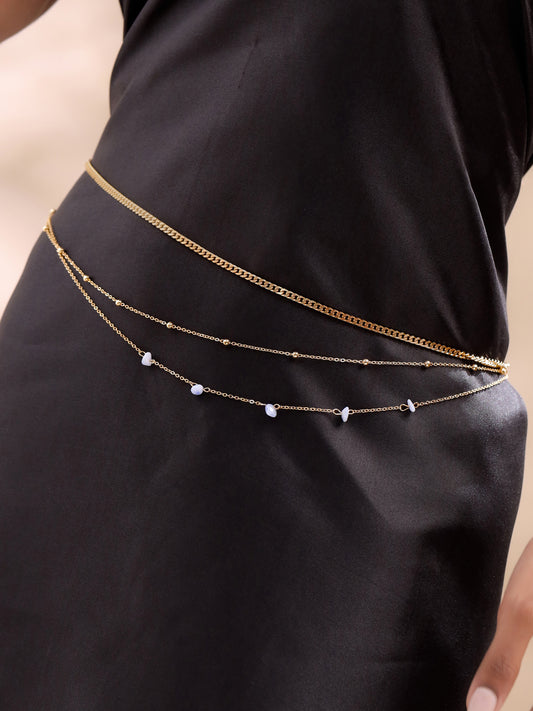 Waist Chain for Women Pearl studded Three layerd Golden Waist Chain for Women and Girls