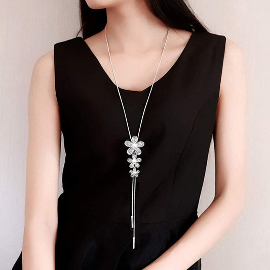 Long Chain Necklace for Women Floral Pendant for Girls Crystal Studded Pearl Long Chain Pendant Necklace for Women and Girls