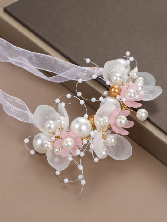 Bracelet for women and Girls Pink Floral Bracelets for Women Bridal Wedding Bracelet Fabric Wrist Band Pink Pearl Hand Bracelet For Women and Girls