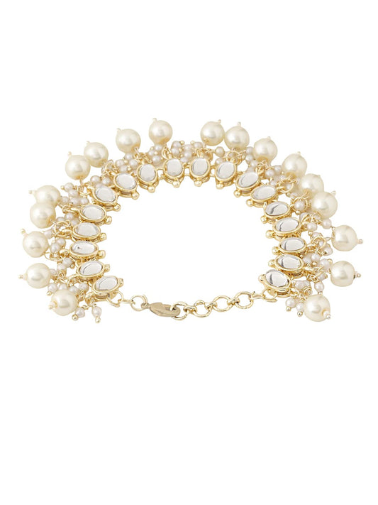 Bracelets for Women Gold Toned Kundan Studded Pearl Drop Traditional Adjustable Bracelet for Women and Girls