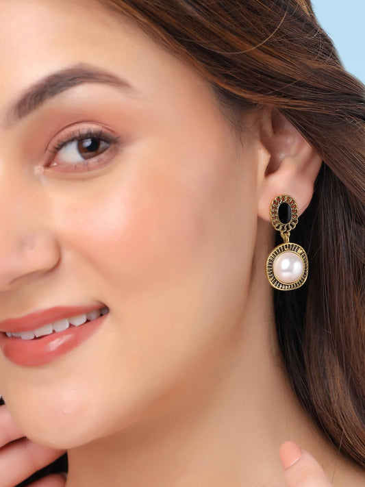Pearl Drop Earrings For Women | Fashion Women Earrings | Oxidised Gold Plated Pearls Drop Earrings For Girls | Chic Reverie | Birthday Gift for Girls Anniversary Gift for Women