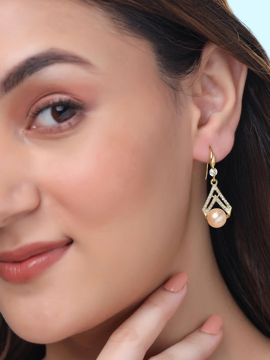 Pearl Drop Earrings For Women | Fashion Women Earrings | Gold Toned Pink Pearls Earrings For Girls | Birthday Gift for Girls Anniversary Gift for Women