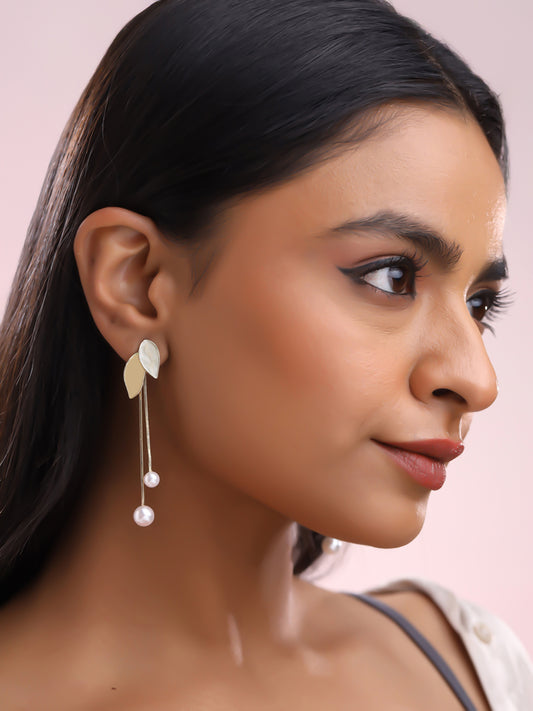 Dangler Earrings for Women Girls | Fashion Golden Women Earrings | Western Style Gold Plated Pearl Long Danglers Earrings for Women | Birthday Gift For Girls Anniversary Gift for Wife