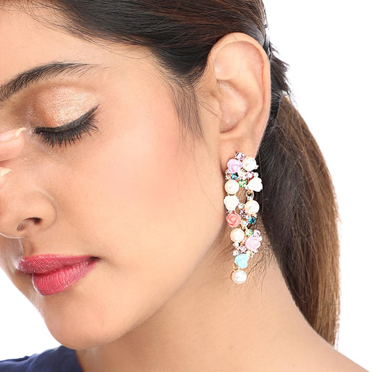 Pearl Earrings for Women Fashion Collection Multicolor Rose Floral Design Gold Plated Danglers Earrings For Women