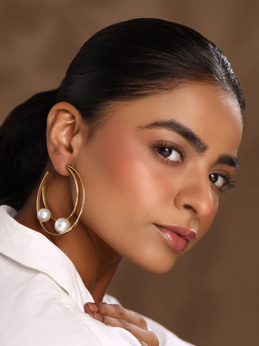 Pearl Hoop Earrings for Women | Fashion Golden Women Earrings | Western Style Gold Plated White Pearls Big Hoop Earrings for Girls | Birthday Gift for Girls Anniversary Gift for Women