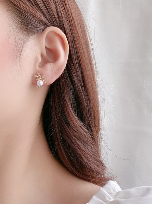 Earrings For Women Gold Tone Leaflet Designed Pearl Studded Stud Earrings For Women and Girls