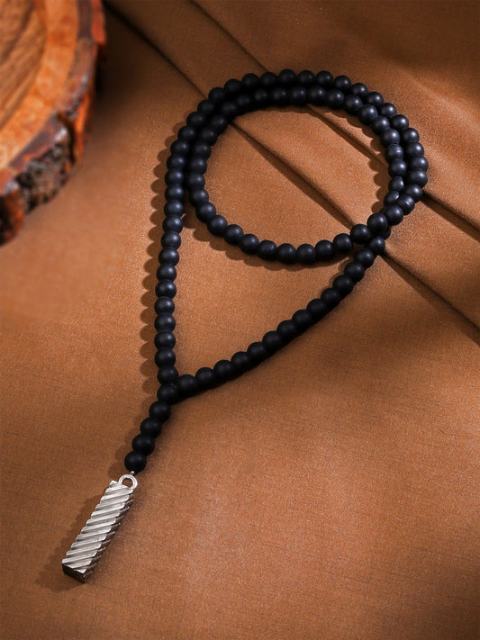 Men's Black Beads Mala Necklace - Stainless Steel & Stylish Design | 62 cm | Black