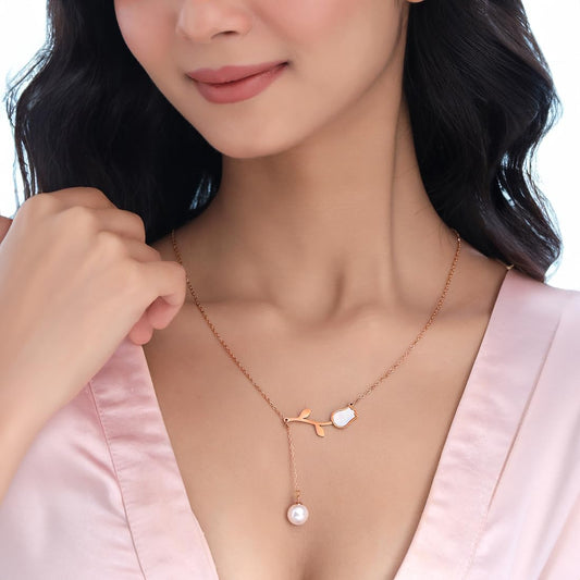 Necklace for Women and Girls Fashion Golden Necklace for Women Western | Stainless Steel Gold Plated Floral Shaped Chain Necklace for Girls | Birthday Gift for Girls & Women