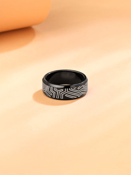 Black Band Ring for Men - Premium Stainless Steel Accessory | Size 9