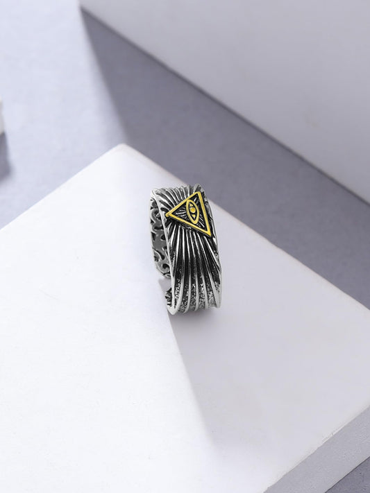 Vintage Eye of God Engraved Stainless Steel Band Ring | Size 9 | Black