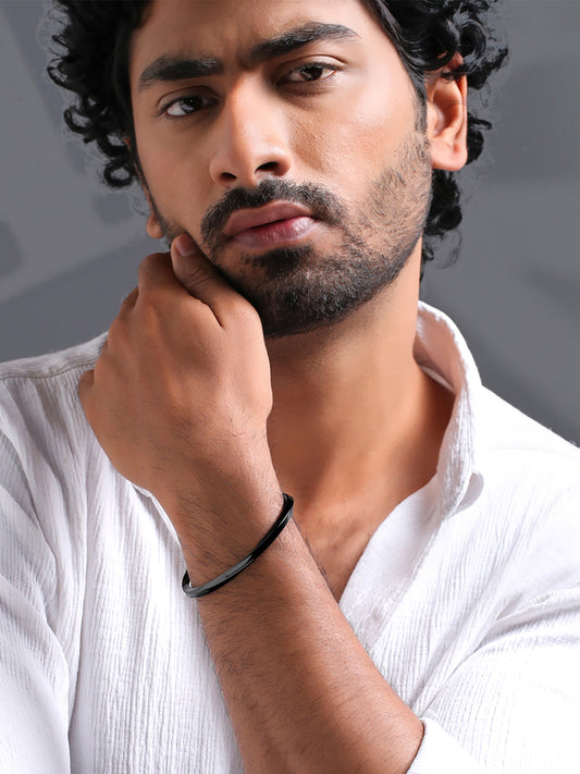 Fashion Black Open Kada: Adjustable Stainless Steel Bracelet | Black | One Size