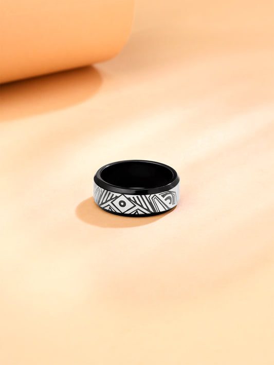Stylish Black & White Mens Ring: Stainless Steel Hand Accessory | Size 9