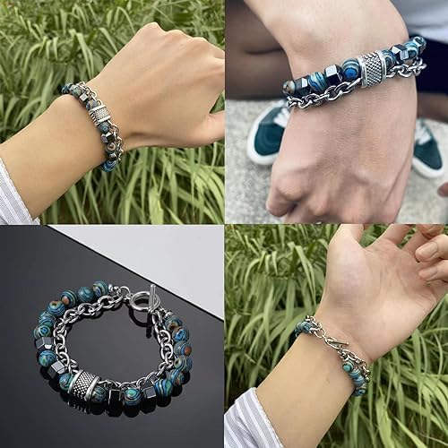 Bracelet for Men and Boys Fashion Blue Beads Bracelets for Men | Stainless Steel Punk Chain Bead Bracelet for Boys | Birthday Gift For Boys and Men Anniversary Gift for Husband