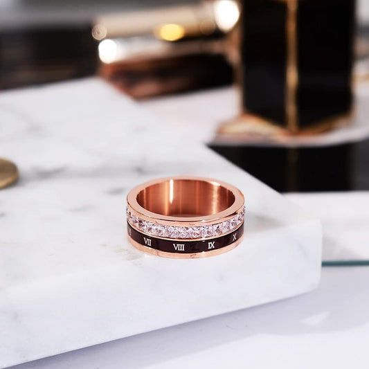 Rings for Women Stainless Steel Roman Numeral Spinner Ring Single Row Crystal Statement Ring for Women and Girls