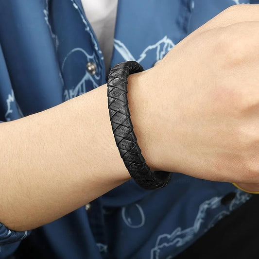 Bracelets for Men and Boys Fashion Black Leather Bracelet for Men | Stainless Steel Magnetic Clasp for Men's Wristband | Birthday Gift for Men and Boys Anniversary Gift for Husband